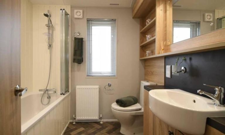 The kitchen really is the heart of your holiday lodge – and the Willerby Pinehurst is no exception, boasting integrated appliances and a stunning double larder. Plenty of storage for all cookery bits and bobs. The Willerby Pinehurst’s kitchen island is a great feature for sharing a drink and catching up with loved ones.
