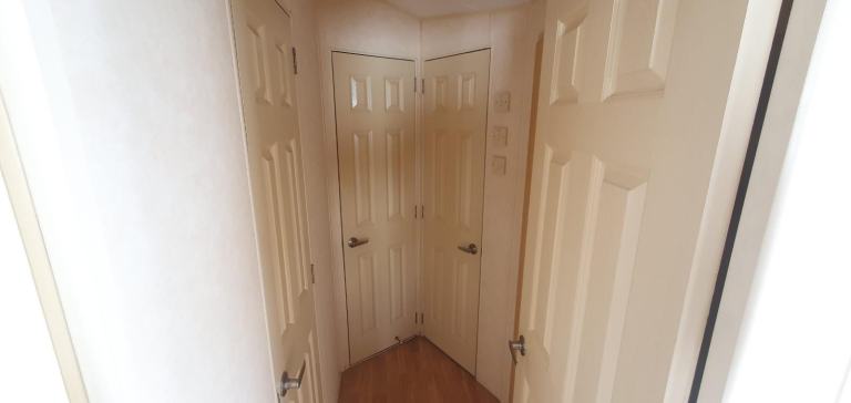 The master bedroom is very spacious with double wardrobe and overhead storage. The twin room also has a single wardrobe with drawers, along with an over head shelving.