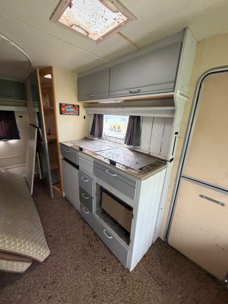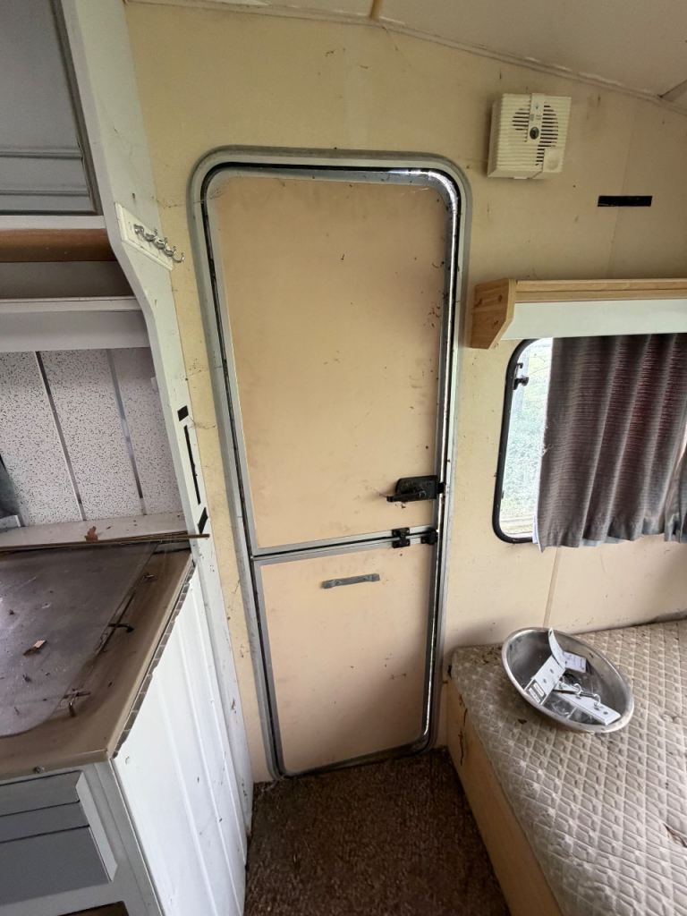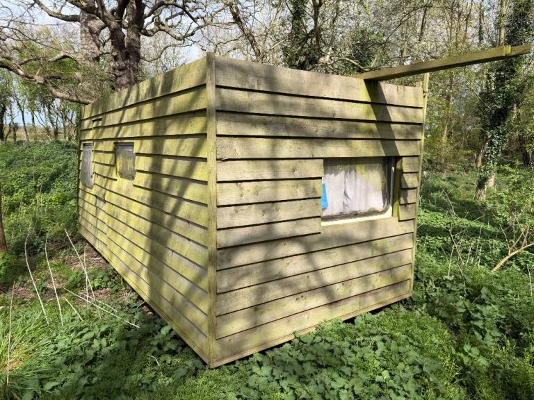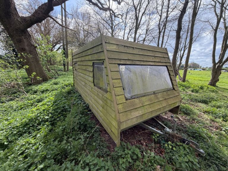 Wooden clad caravan