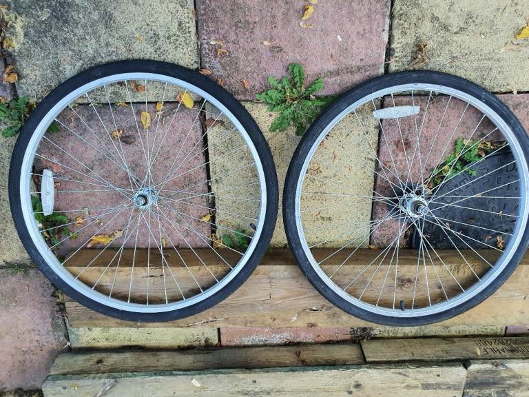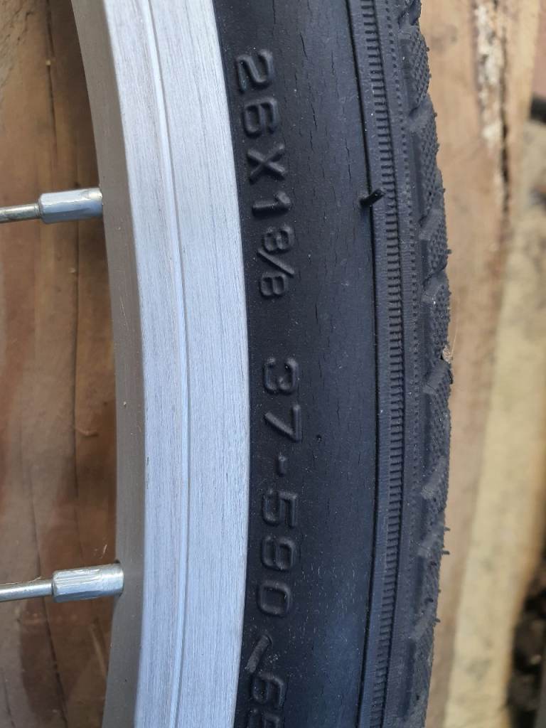 Set of bicycle wheels front and back 26 x 1 3/8 size brand new with tyres and 6 speed casette.