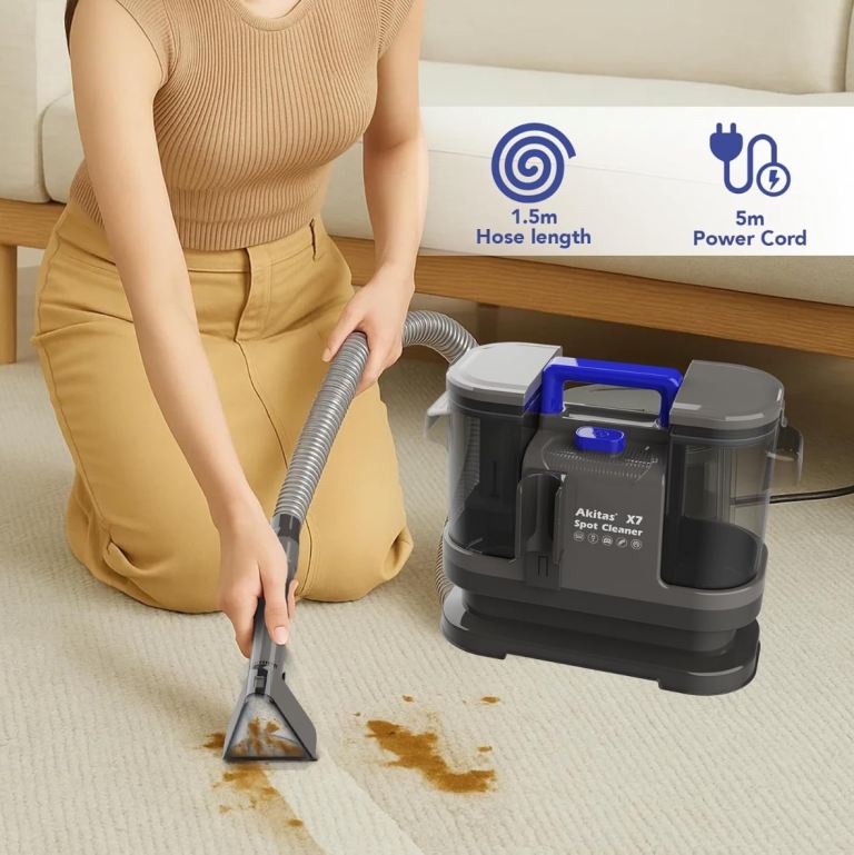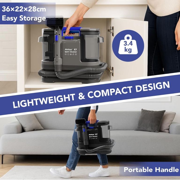 * Powerful & Efficient Cleaning – Equipped with a robust 600W motor and 14KPa strong suction, the Akitas X7 effectively removes deep-set dirt, spills, and stains from carpets, sofas, mattresses, and car seats. It also dries materials faster compared to the previous generation 400W motor.