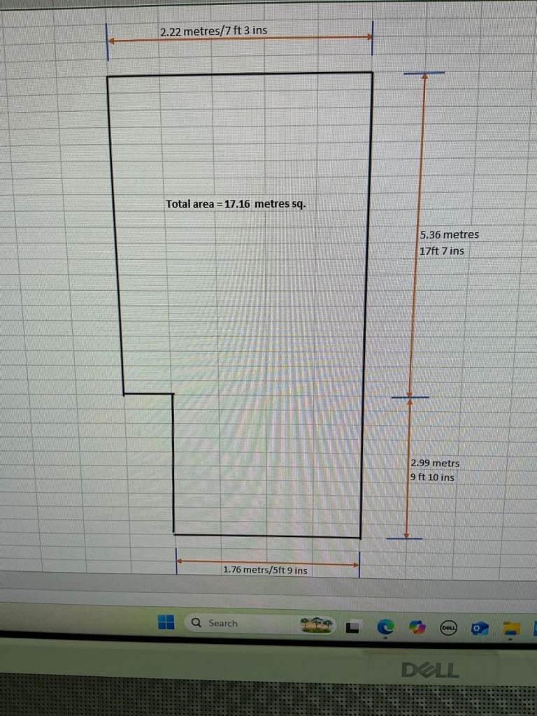 Area - 17.16 metres sq