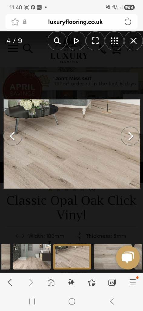 New, but partially opened, Classic Opal Oak Click Vinyl (LVT) flooring, which was initially purchased for a kitchen but didn't match. You're looking for £500 ono, which is a fair price considering the original price was £770 and there's some damage to a few boards, pick up only