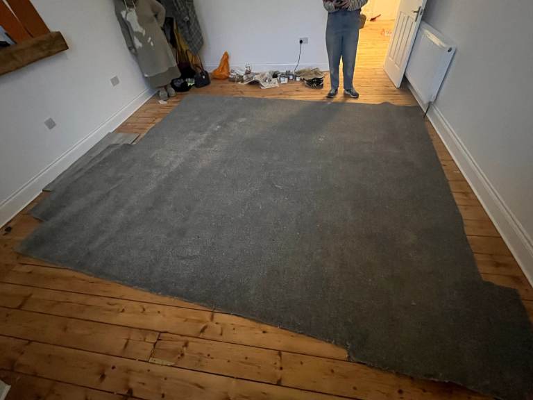 flooring is still a current colour & can still be purchased @ £25 sq mtr( average price)at most flooring retailers.Total contentsis 1 box & three planks(value about £50)includes underlay & incisor bar reduced to clear £10 probably do sm bathroom enough for roughfly 4' x 8' +