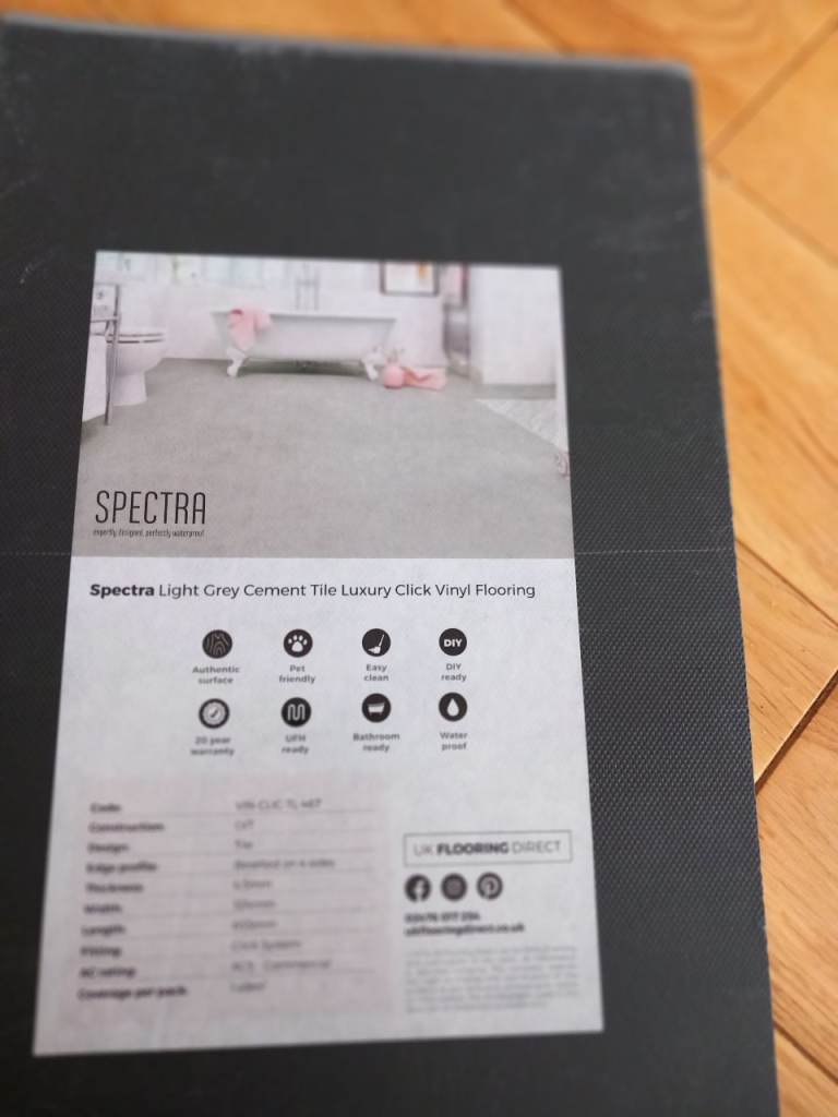 6 packs Spectra light grey cement tile luxury click vinyl flooring + acoustic vinyl underlay.
