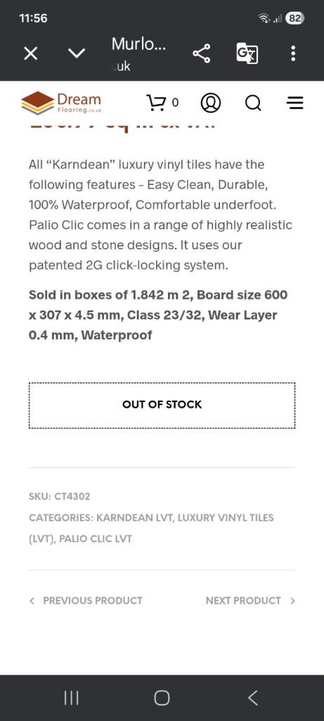 I have 2 half boxes approximately 25 tiles of MURLO, Palio Clic, LVT click flooring.