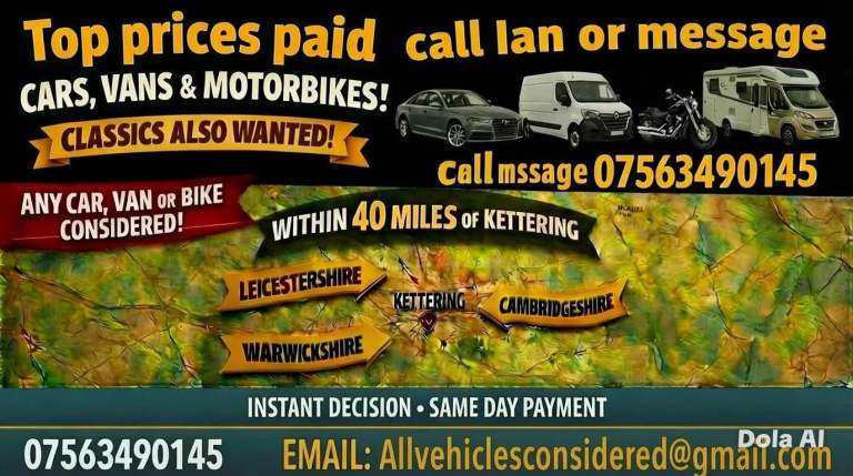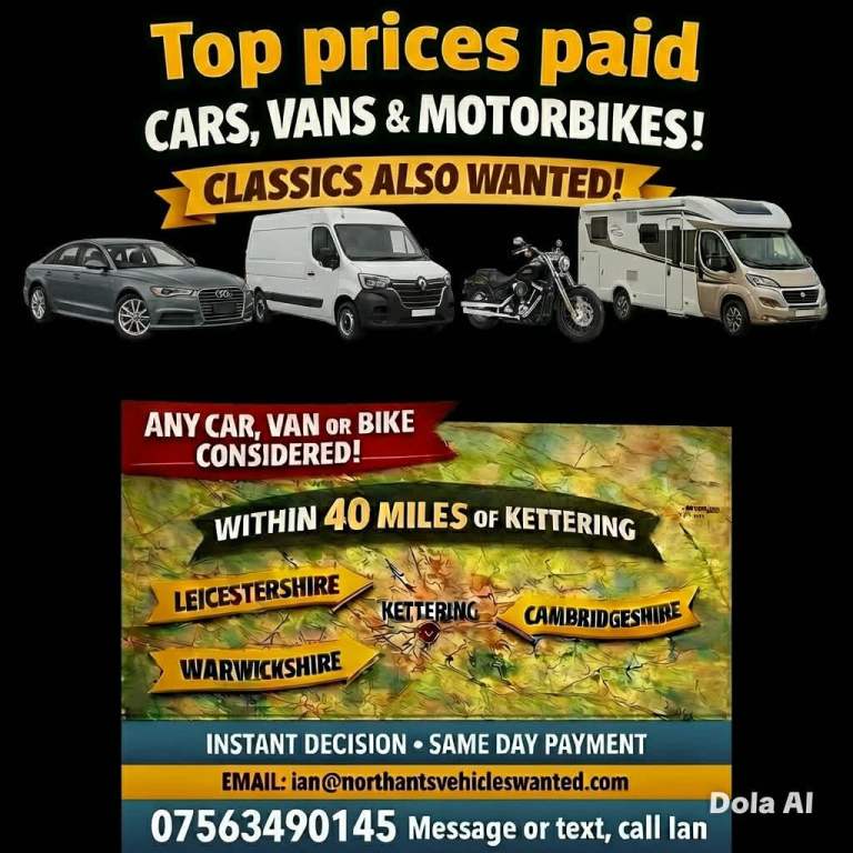 • 📍 Within a 40 mile radius of Kettering, Northamptonshire – We come to you seven days a week for anytime that suits you