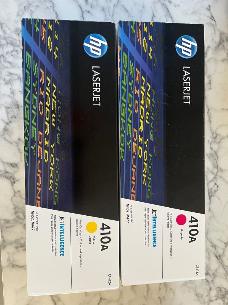 GPC Image replacement toner cartridges for HP printers, specifically models CF411A and CF413A.