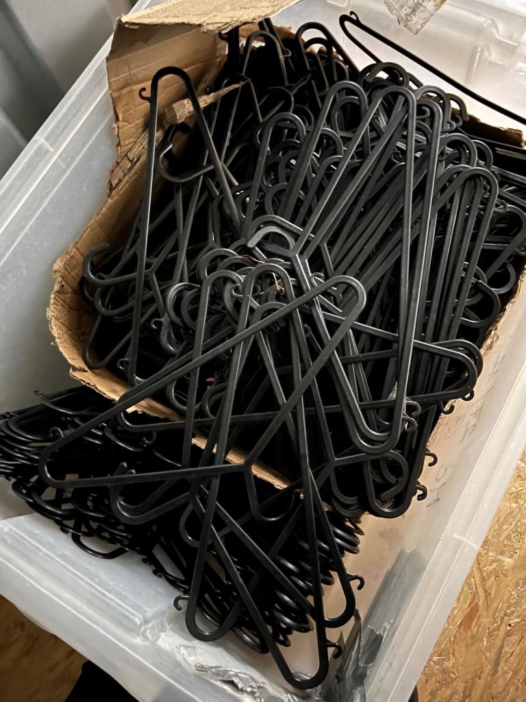 Selling a large batch of approx. 300–500 black plastic hangers, ideal for retail shops, events, wardrobe setups, or fashion storage.