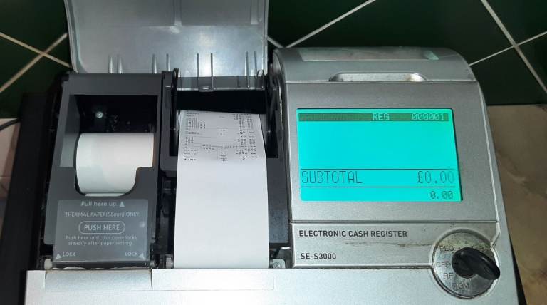 Good working order, two till rolls, one for audit and one for customer receipt (can turn on/off).