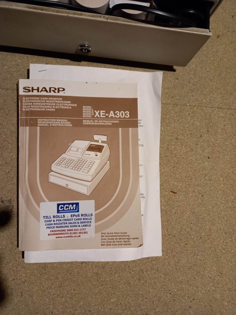 Sharpe EX-A303 cash register shop till in fully working order as per the photos. Featuring a twin roll journal receipt for keeping accurate records, it also comes with the instructions manual and supervisor key plus till rolls. It's an easy straight forward till to use as well.