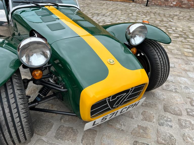 We are super excited to offer for sale this Super 7. This beautiful little sports car is finished in the Iconic Green and Yellow Paint with Black Interior. The specification consists of a 1.6 Kent Crossflow Engine, Twin Weber Carbs, K&N Air Filters, 5 Speed Manual Gear Box, 15"" Prisoner Alloy Wheels, Rear Roll Bar, Side Exit Exhaust, Momo Steering Wheel, Harness Belts, De Dion Rear Suspension, Side Door and Mirrors, Side Wind Deflectors, Hood, Tonneau Cover, and a Seven Front Grill. The car is in excellent condition with lots of service history, owners books, and spare keys. Home delivery is also available. Please check our website for our full stock list. Nationwide delivery is available. Please call us before making a special trip to view a vehicle in order to check that it is still available for sale. This particular vehicle is on display in our viewing by appointment only showroom located in Ormskirk, Lancashire. Viewing is strictly by appointment only, please call us to make arrangements.