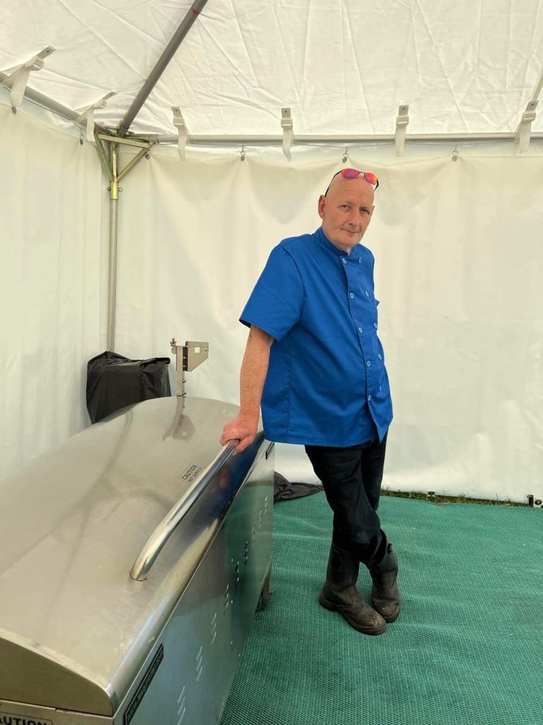 Comes with a electric spit machine and also a large gas bottle ready too put too work