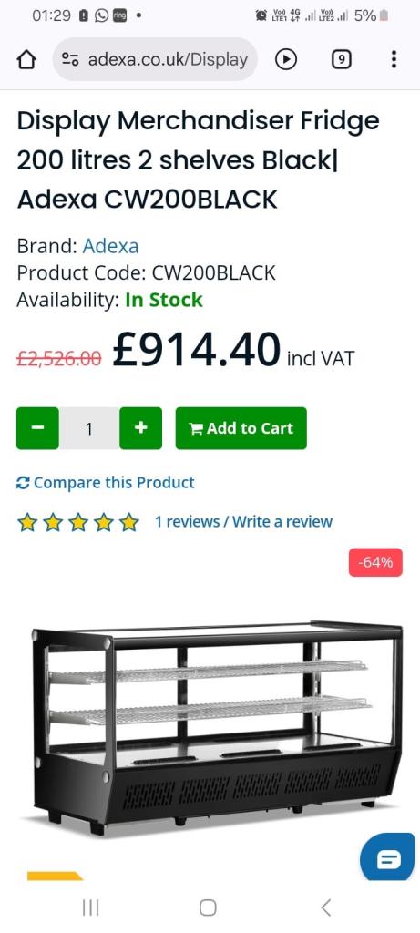 Posting for 2+ monthsDisplay merchandiser fridge 2L / 2 shelves / catering/ cafeteria appliances