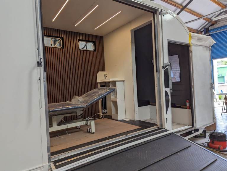 Horse trailer conversion into mobile clinic/office/studio space. Solar panels, electric and gas, water tanks. All original parts come with this unit to easily convert back into a horse trailer.