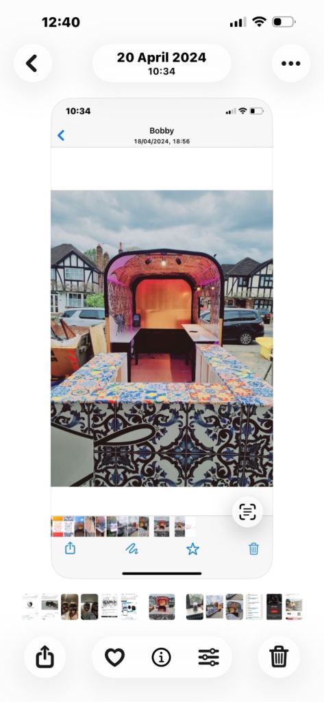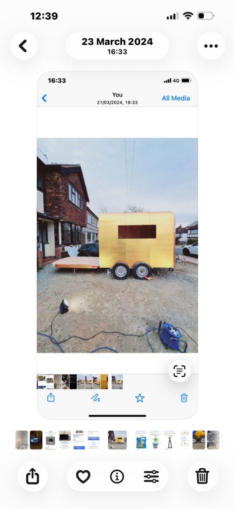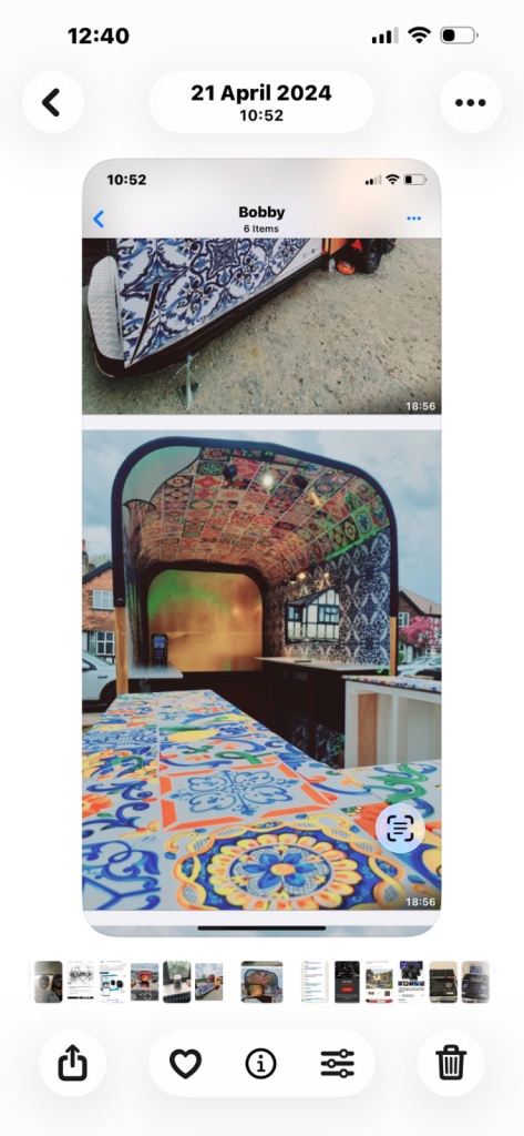 Inside: again completely ply boarded then wrapped in dolce Gabbana inspired vinyl wrapped to ceiling and walls, with working surfaces.