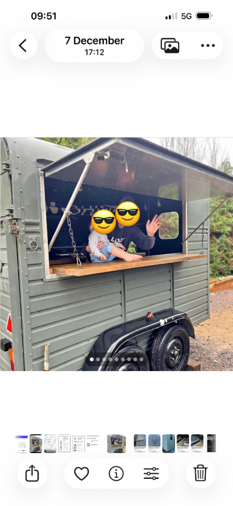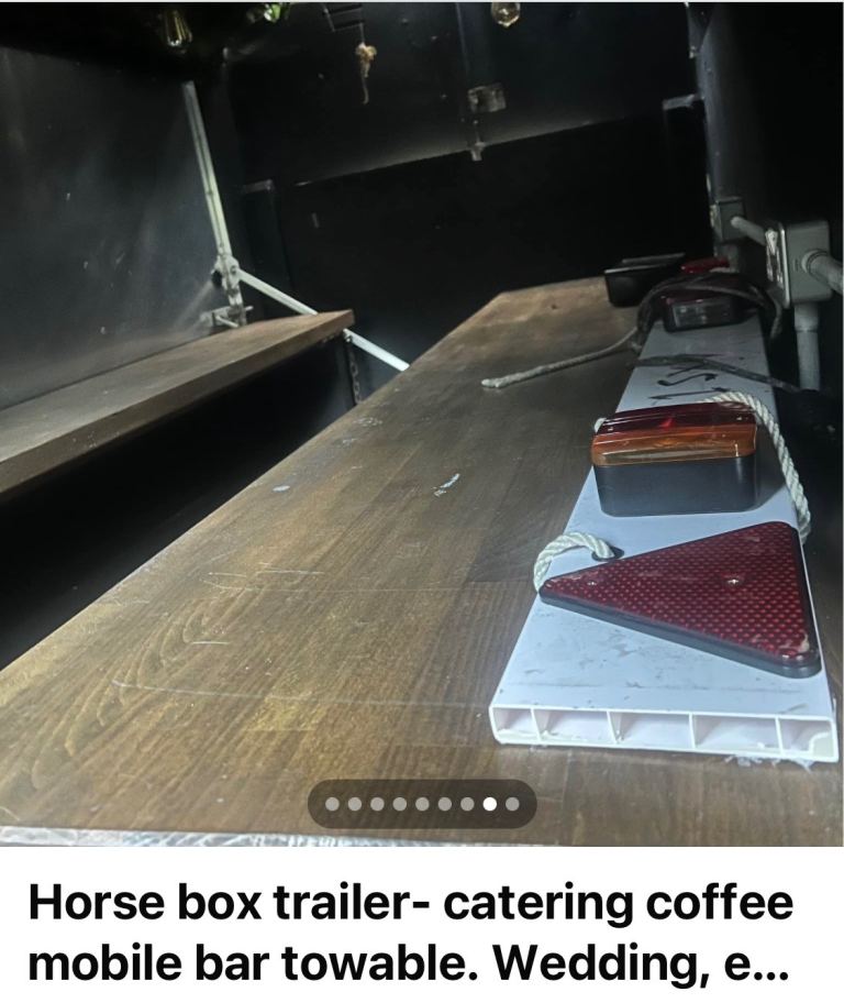 7 pin rice box trailer. Working indicators and brake lights. Internal electric layout. Built in shelving/worktop. Blank canvas for any type of catering set up.