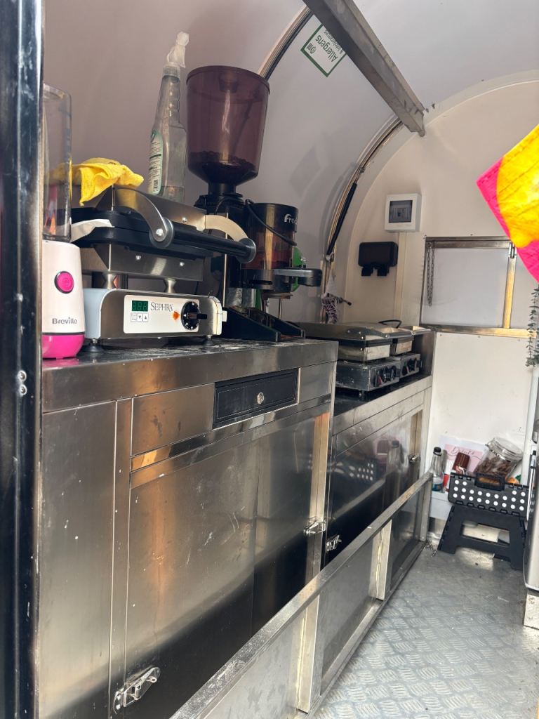 Comes with a fracino 1 group coffee machine, it has 2 sinks, it’s fully stainless steel inside.