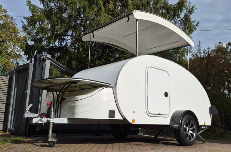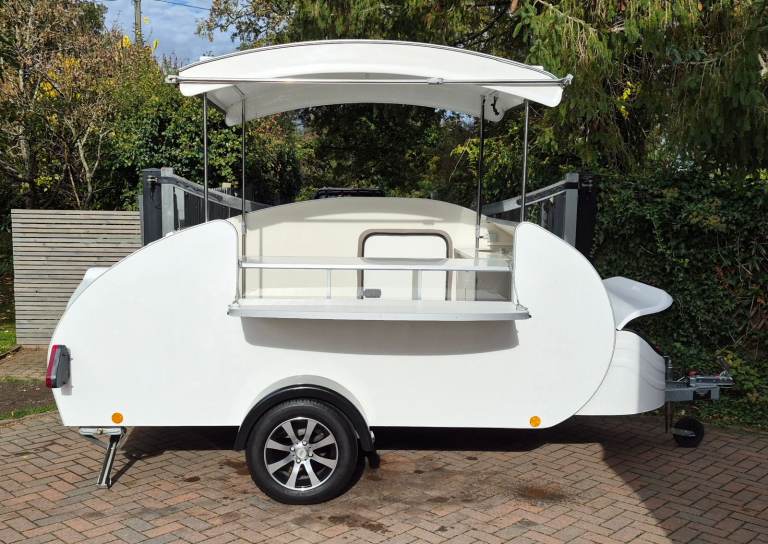 TEARDROP TRAILER CONVERSION CARETTA POD OUTSIDE CATERING BAR CREPES BURGAN VAN HOT DOG