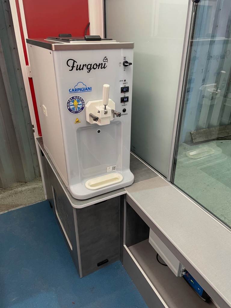 New Carpigiani Furgoni soft ice cream machine with Whitby Morrison 32a electric base fitted August 2024