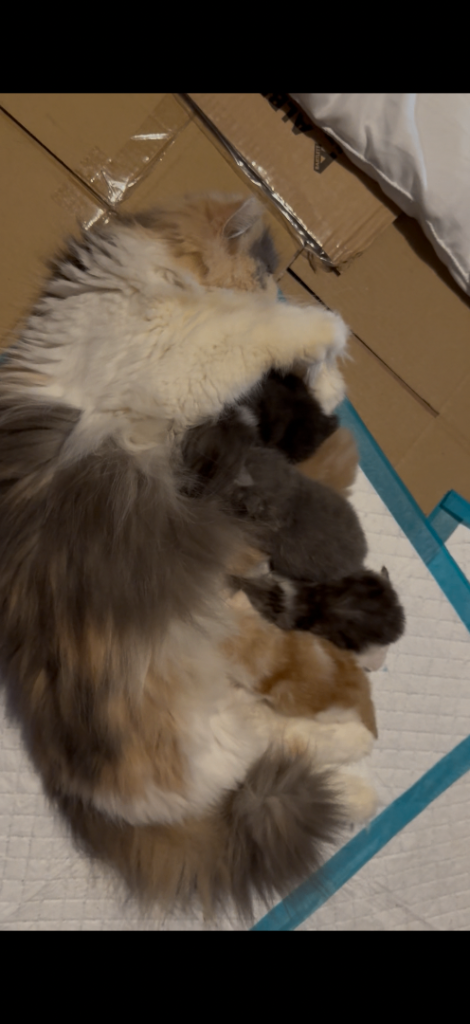 Kittens are all super healthy and taking lots of milk from mum 😊 All weighing a quarter of a kg at time of posting and packing on the weight nicely.