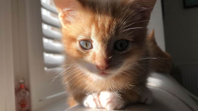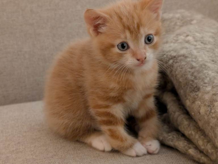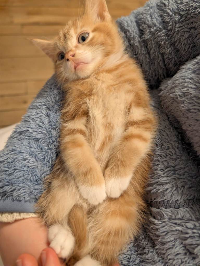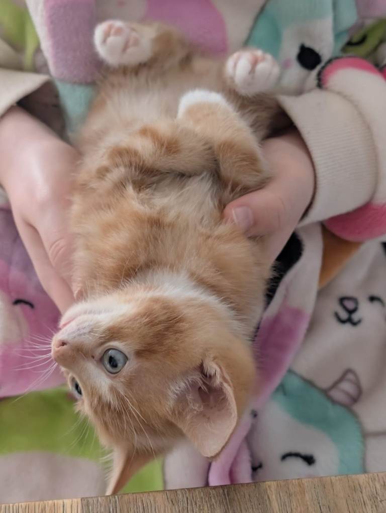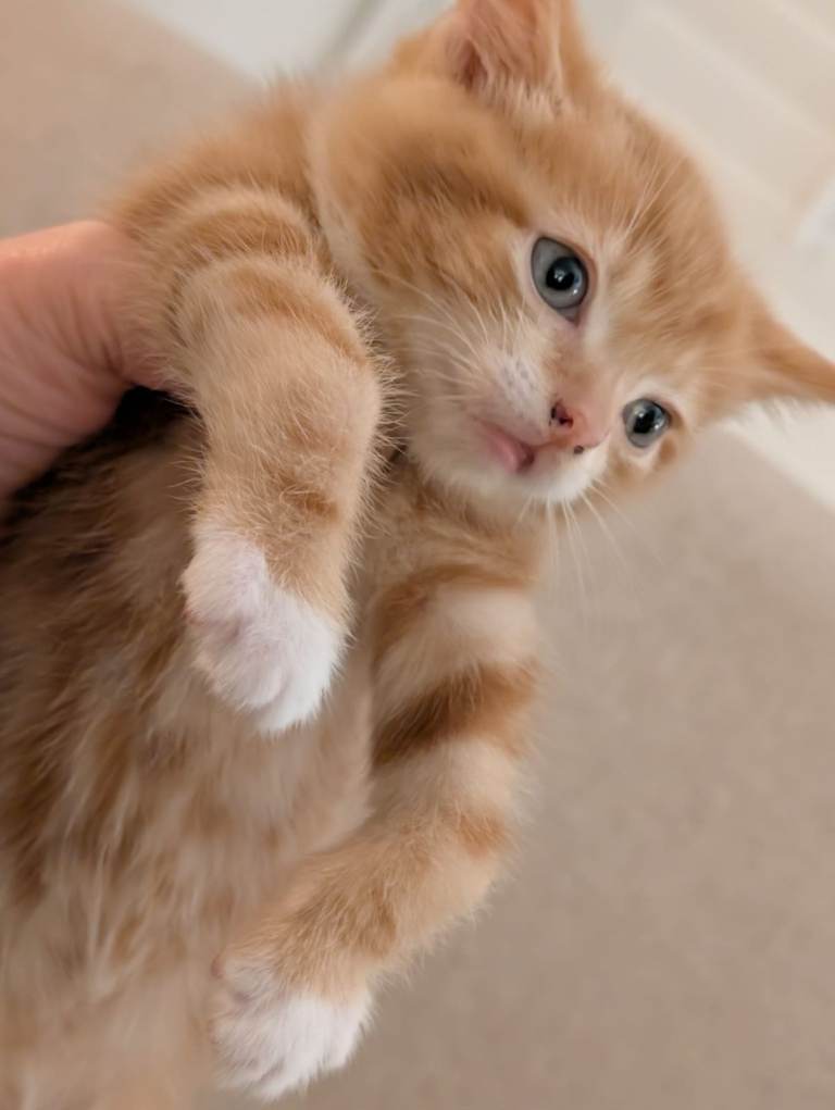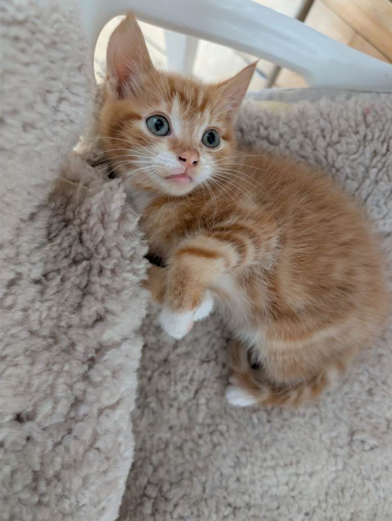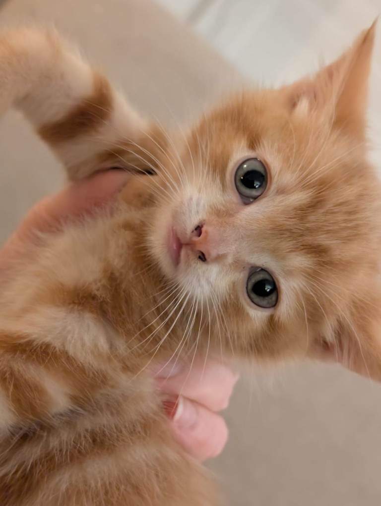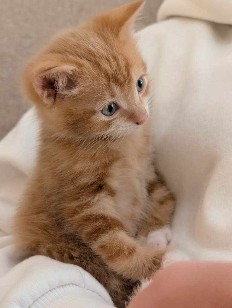 An adorable ginger tabby male kitten is looking for a loving and responsible home. He has a wonderful personality: very sweet, cute, extremely friendly, gentle with children, and loves to cuddle and play. He'll steal your heart!