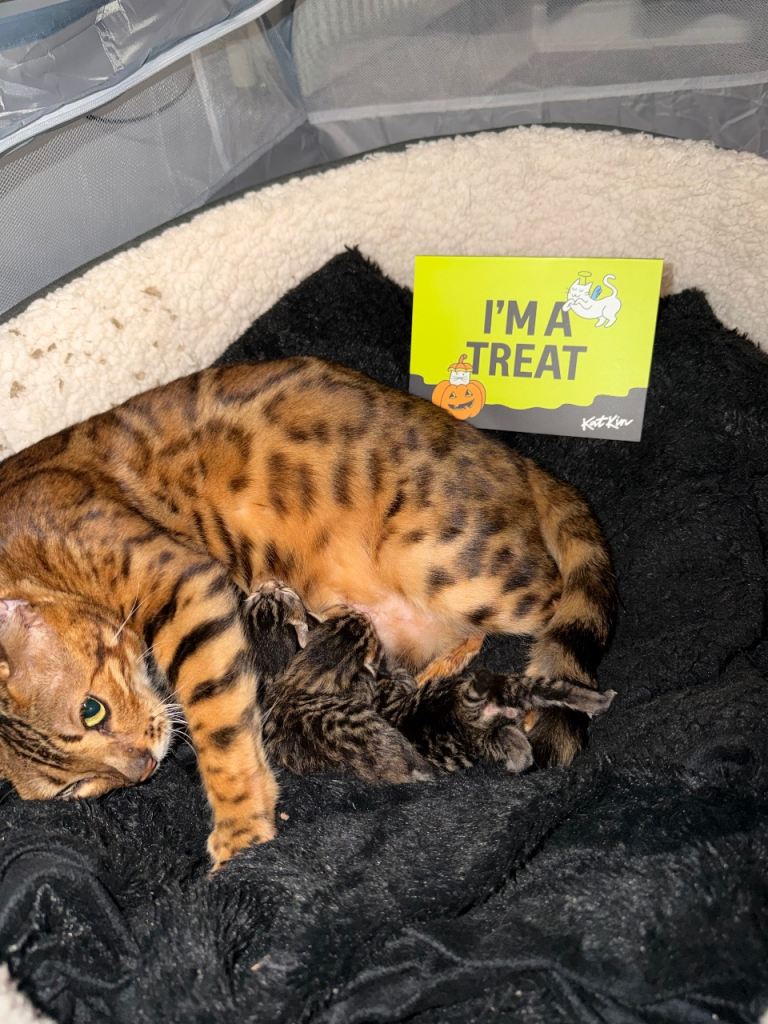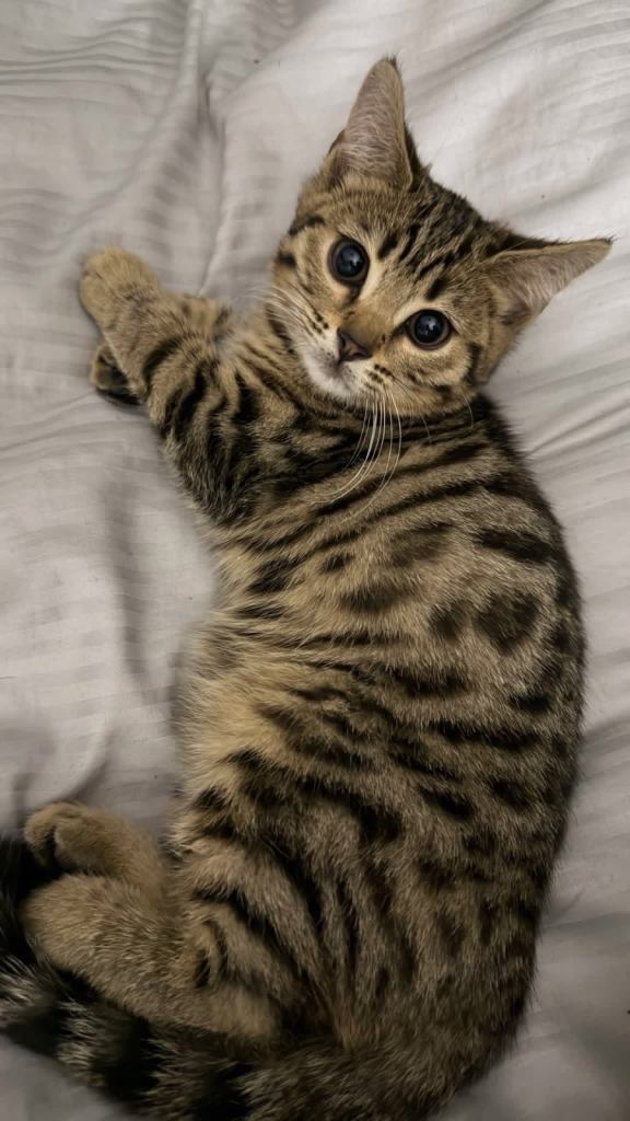 We have a beautiful Bengal x British Shorthair kittens looking for her new forever home.
