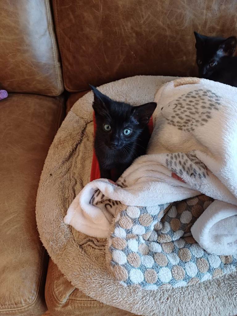 I have three lovely 10 week old kittens for sale. Mum is an Havana of impeccable lineage but poor taste in men, dad, least said the better. They are home reared with dog, wormed, flea free and litter trained. They are exuberant, friendly and confident and ready for their next adventure. All black, two girls and a boy. Will make wonderful pets.