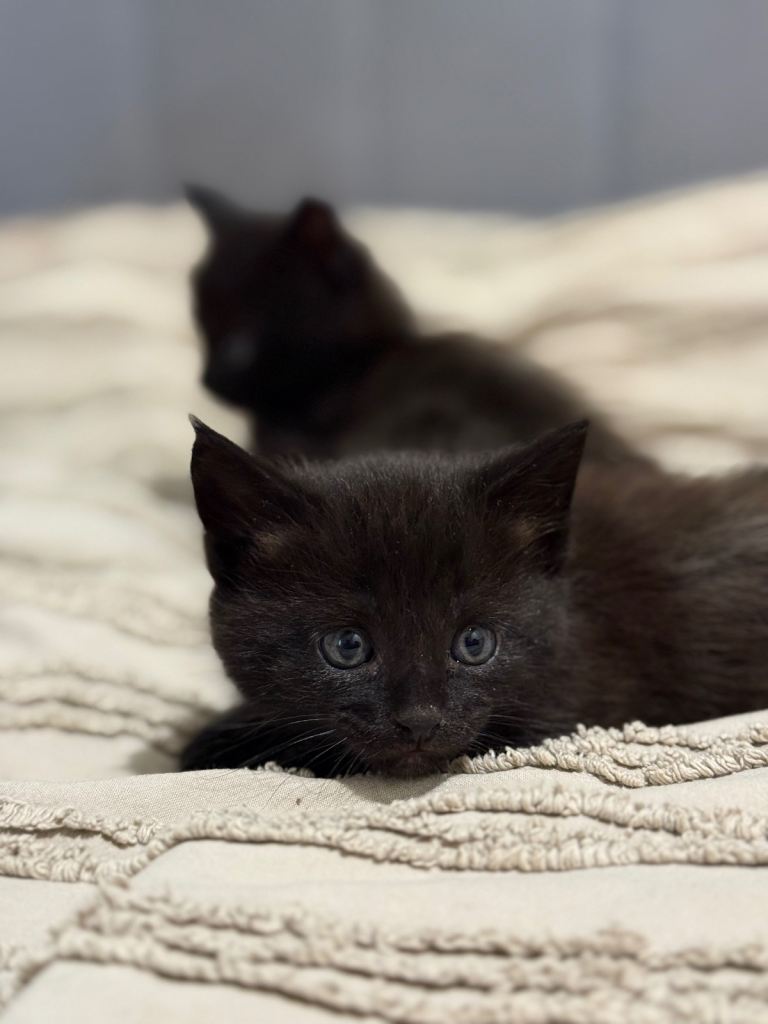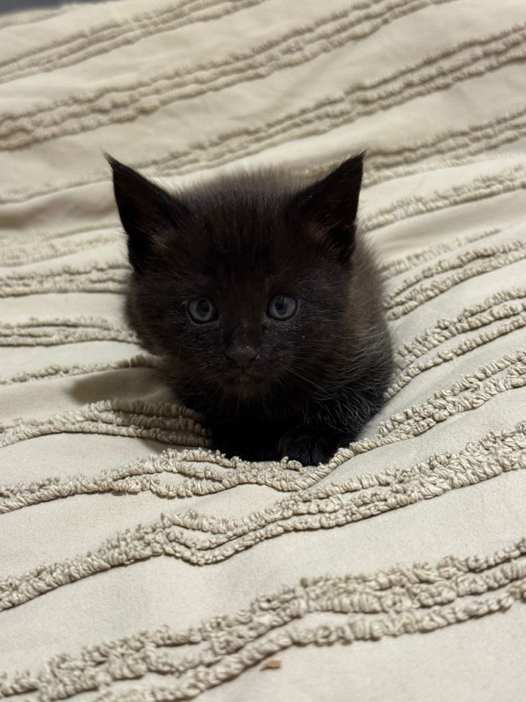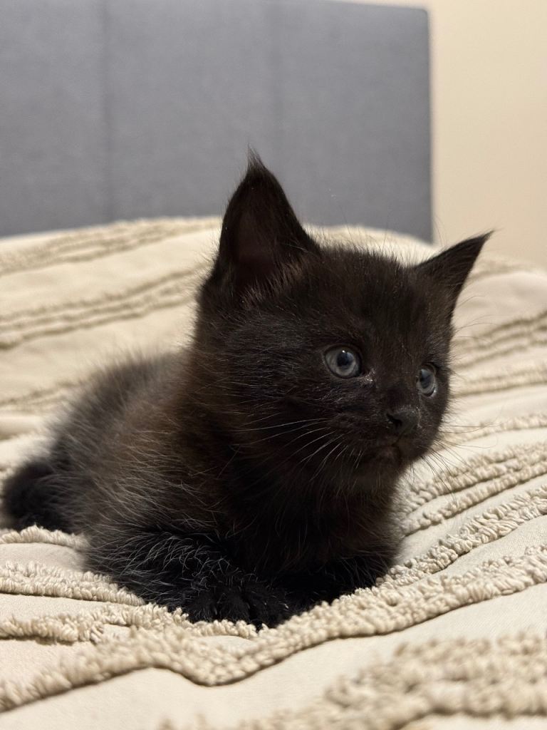 I am selling two adorable black kittens. They are a mix of Maine Coon and a non-pedigree cat. The kittens are playful, healthy, and well-socialized, perfect for a loving home. They have beautiful, fluffy fur and a gentle temperament.