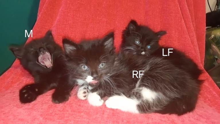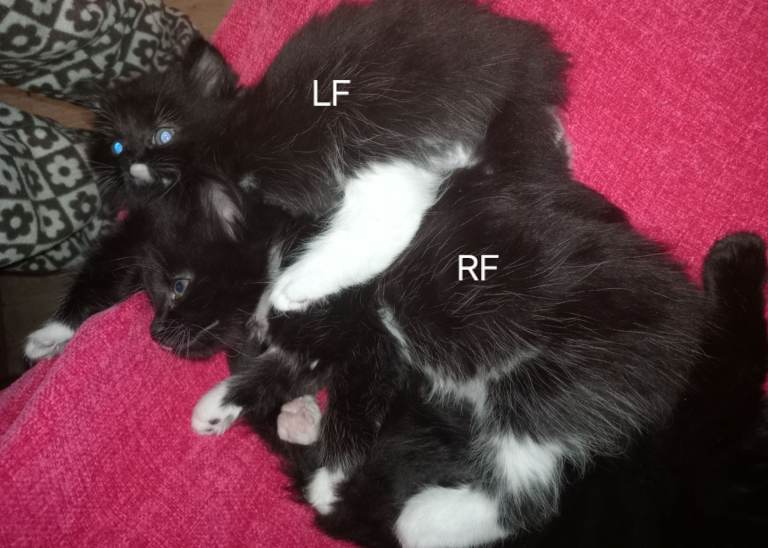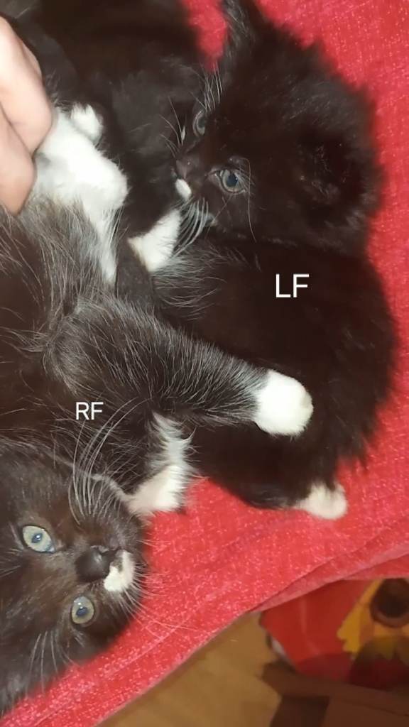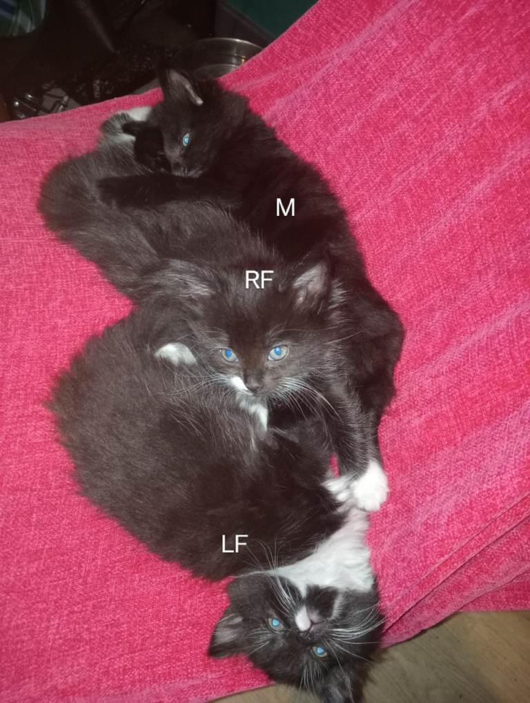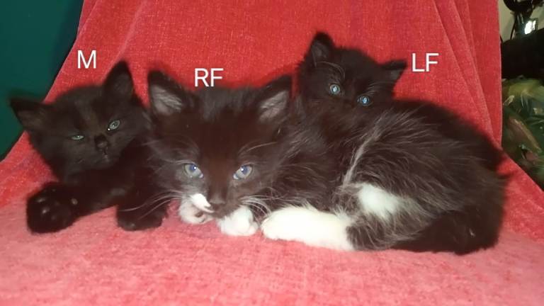 Kittens are bought up with lots of household noises, kids and dogs so are well socialized. Are eating wet food and using the litter tray. Due their first flea/worm treatment next month before they go to their new homes.