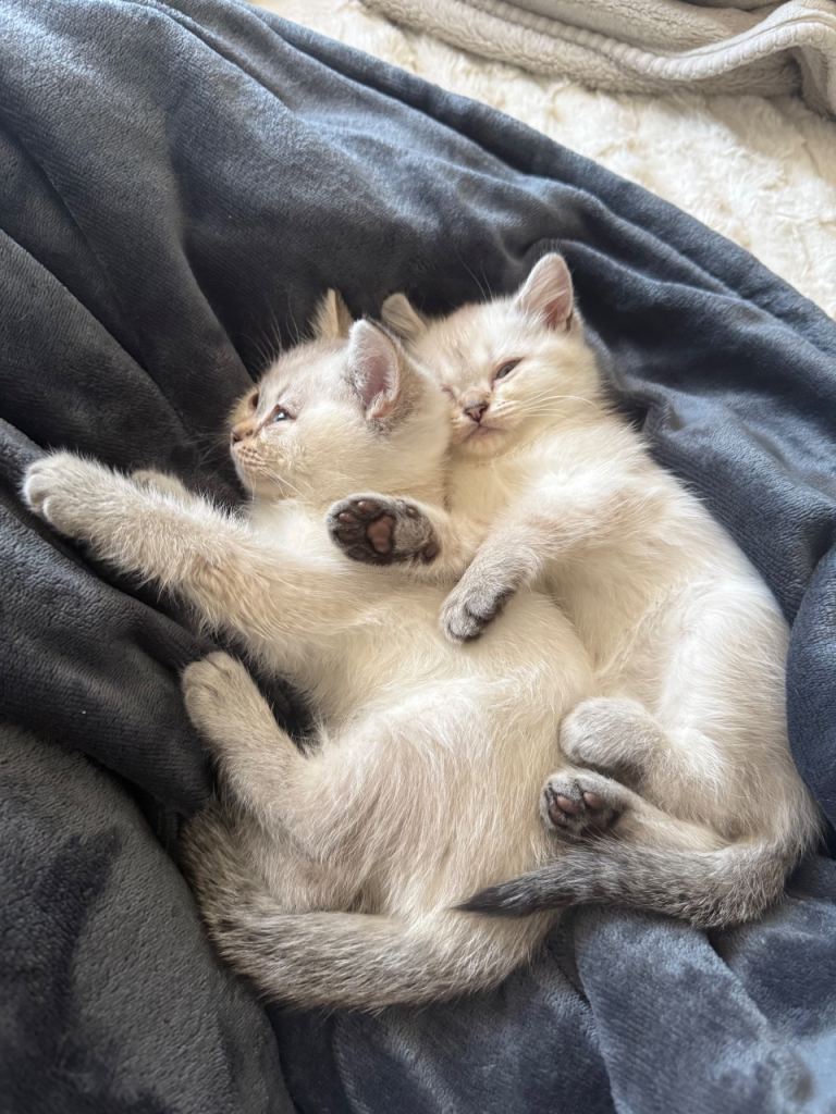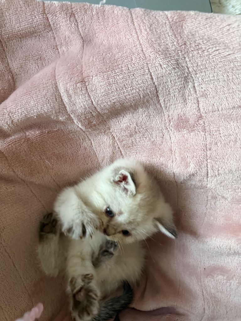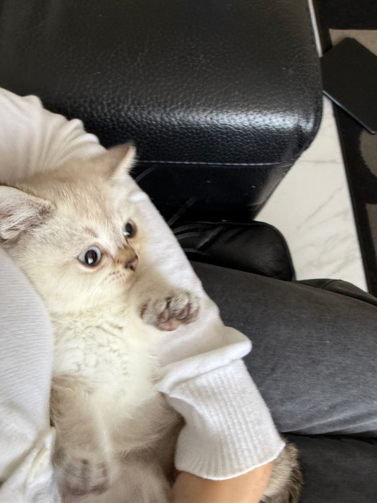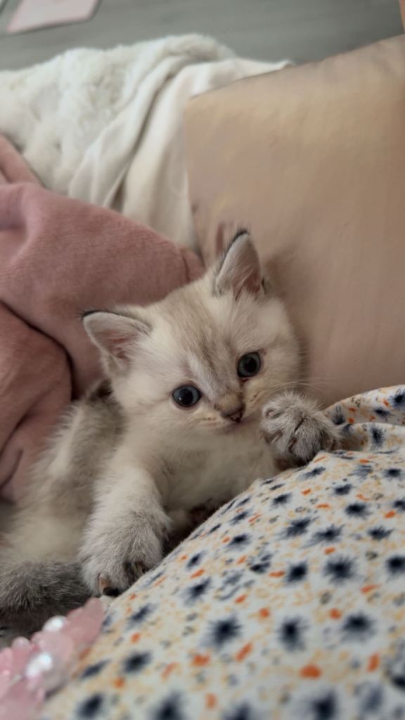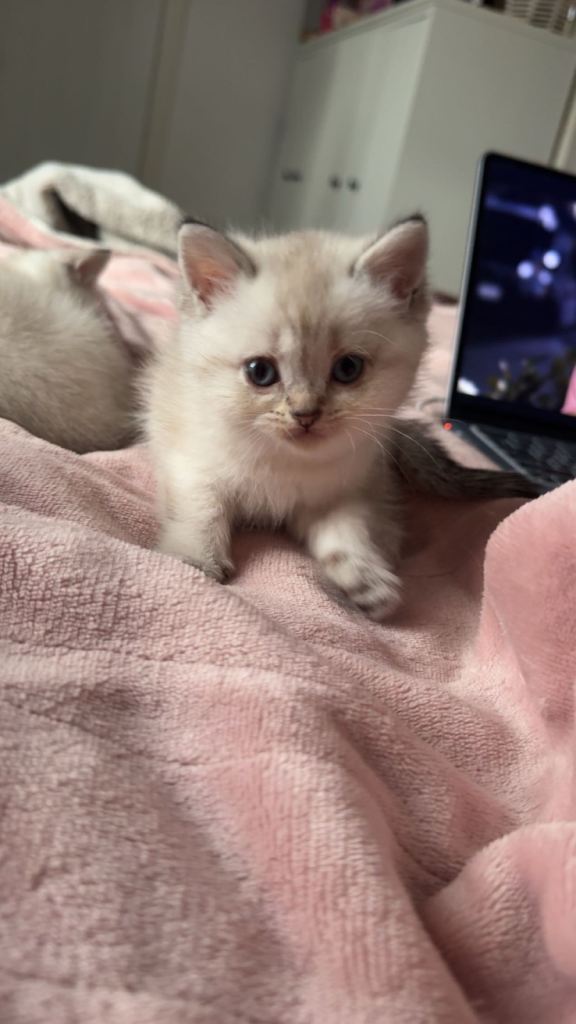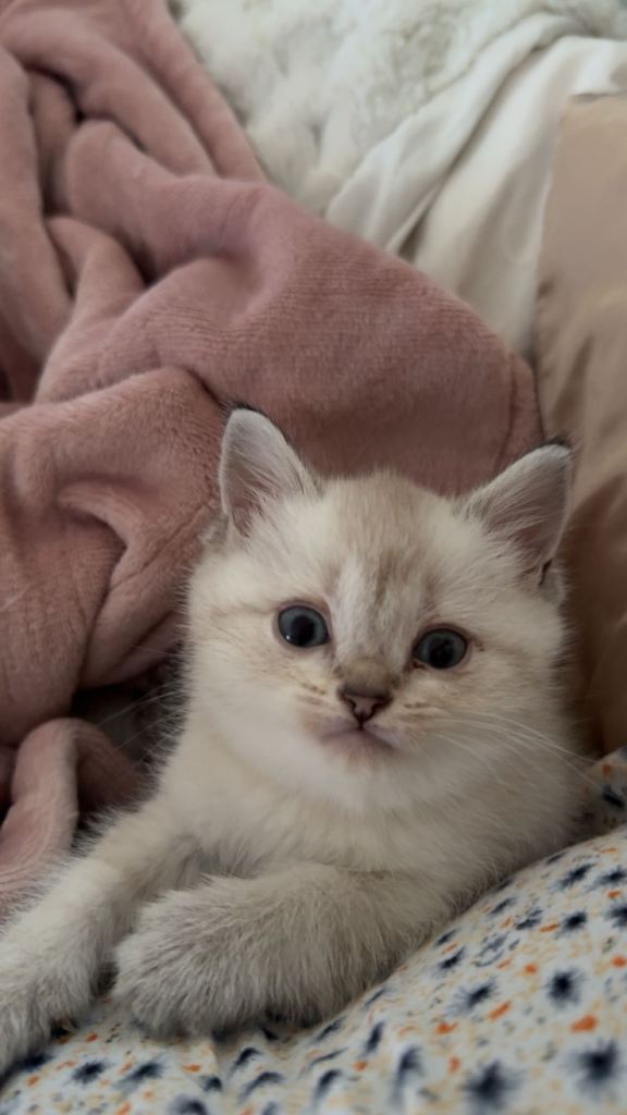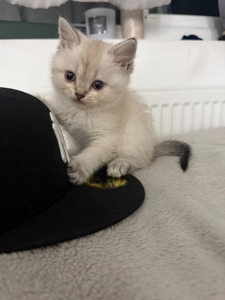 >1 white/beige British short hair kittens with black dipped tail