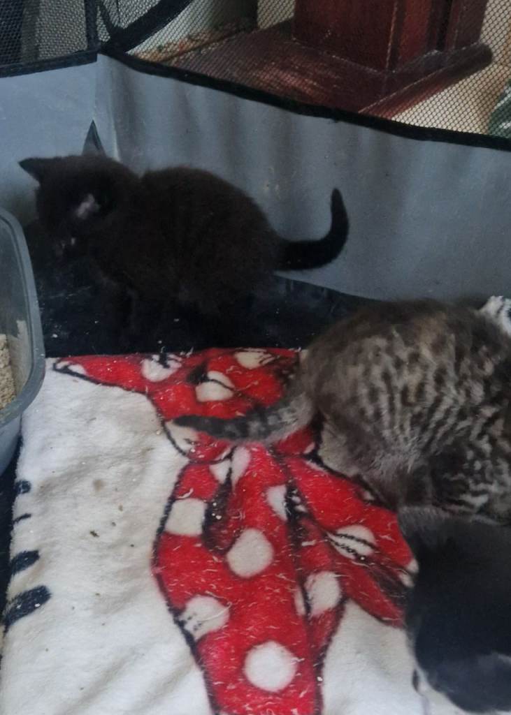 We have only 1 little black kitten very playful and beautiful available he is friendly playful and raised in family home will all be eaten and litter trained before going to loving new homes ready around the 6th April can be seen with mum feel free to message for more details thank for your interest liz xx.