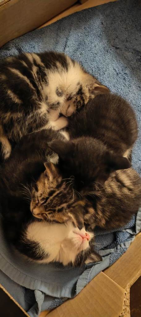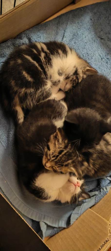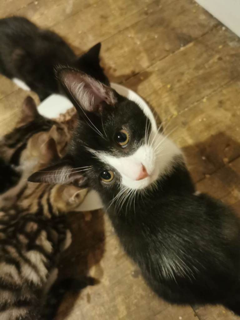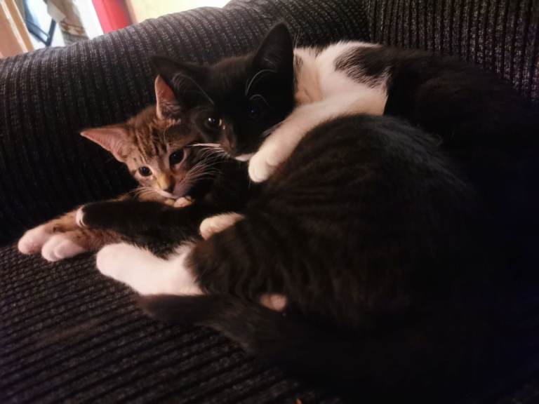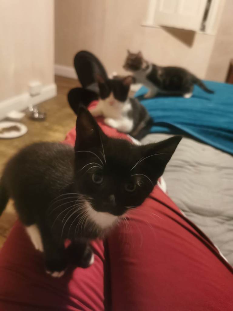 1 male black and white. 1 female tabby. 1 female black with white paws. 13 weeks old kittens. Litter trained. Very loveable and affectionate. Looking for loving long term homes