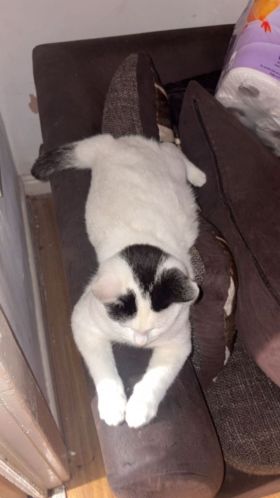 Our lovely 1-year-old male cat is litter trained, affectionate, and settled both indoors and outdoors. He’s great with kids and other pets and has a very gentle nature.