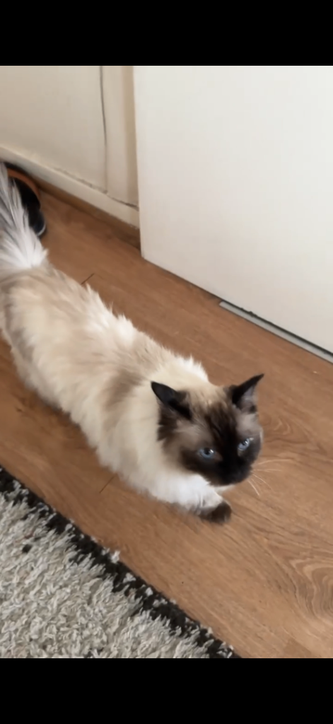 She is affectionate, likes her space but will come for cuddles in the mornings and evenings- she’s developed this routine. She is independent and extremely calm cat hence why she shouldn’t be allowed out to roam outside.