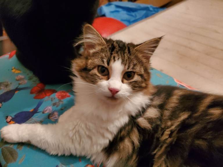 3 kittens, 1 boy and 2 girls looking for a loving home. Will need to complete vetting questionnaire and adoption new guardian agreement. Litter trained, mum is black short hair, dad is tabby and white mix long hair.