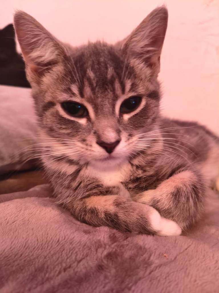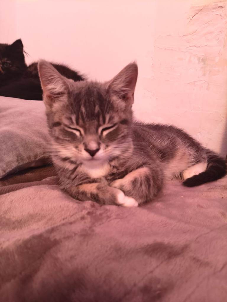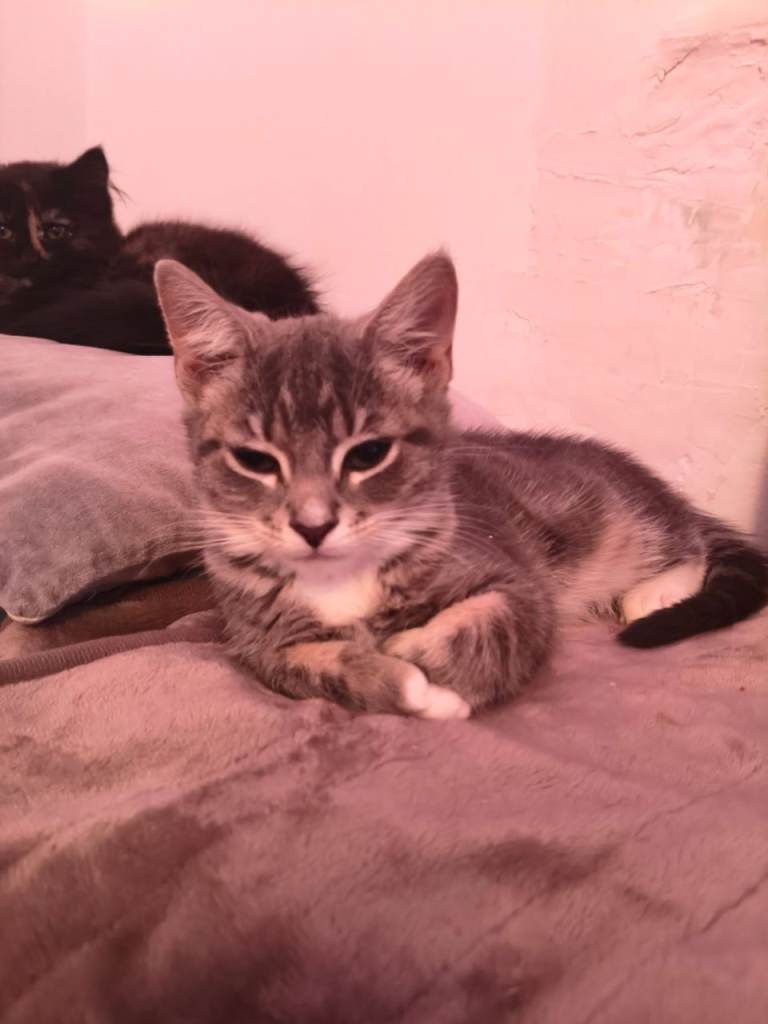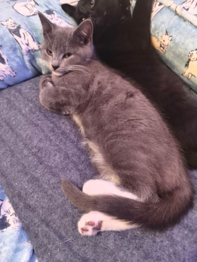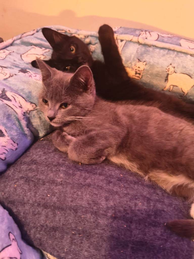 Posting for under a month2 female blue and white kittens. 1 tabby blue and white. 1 blue and white.