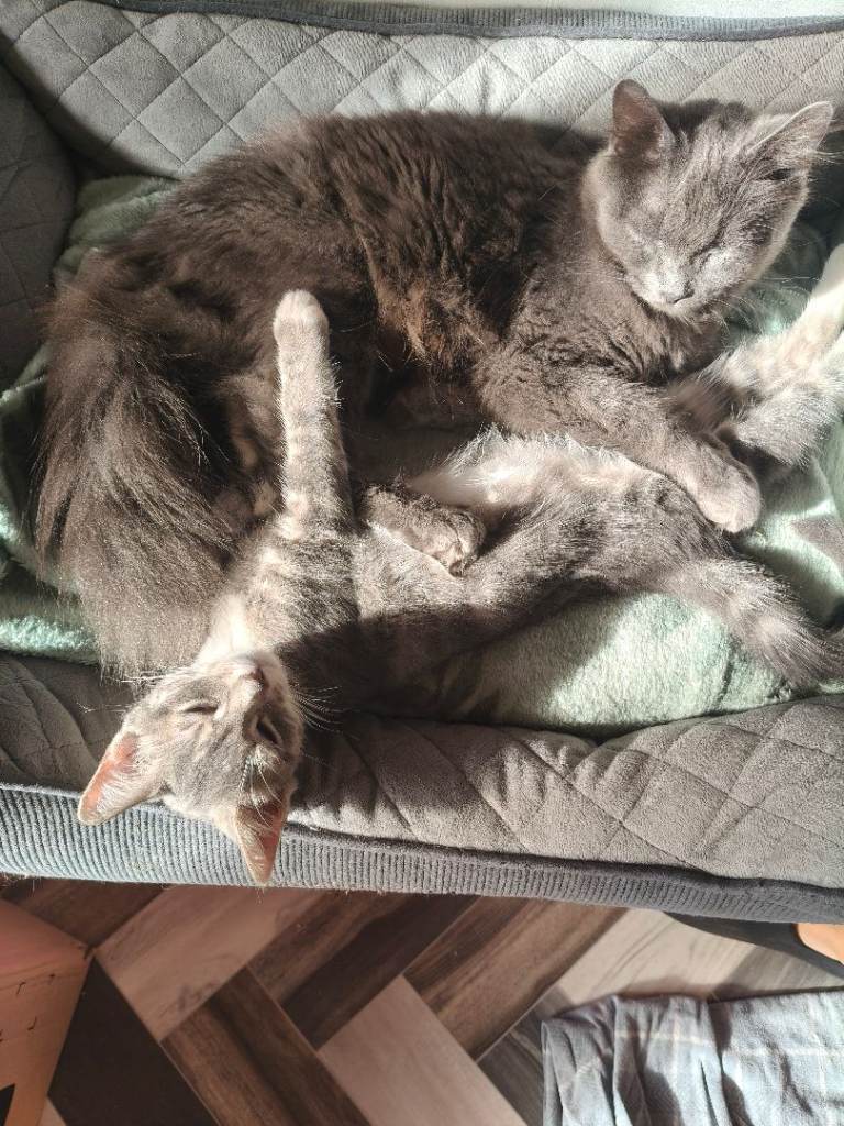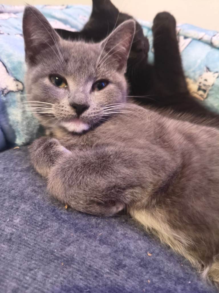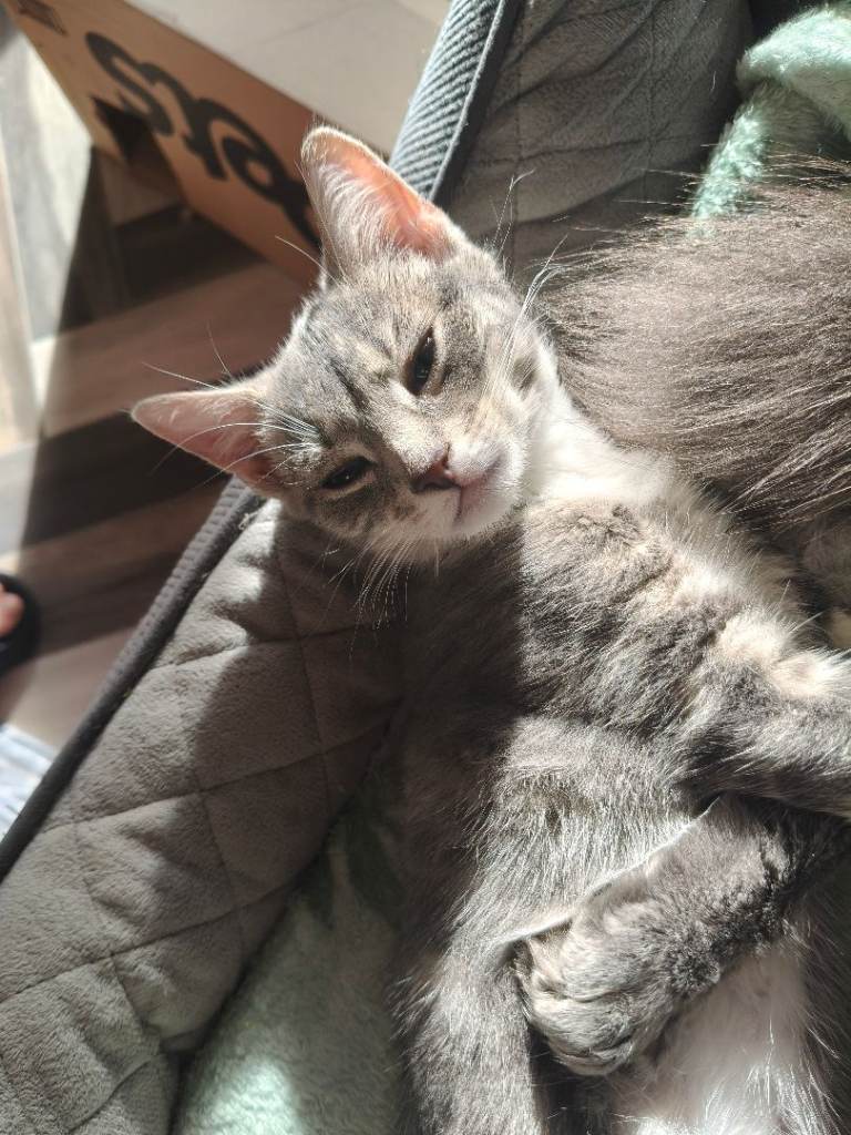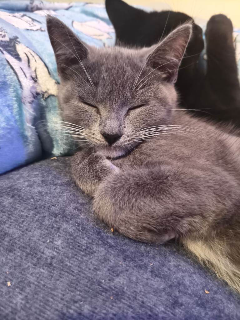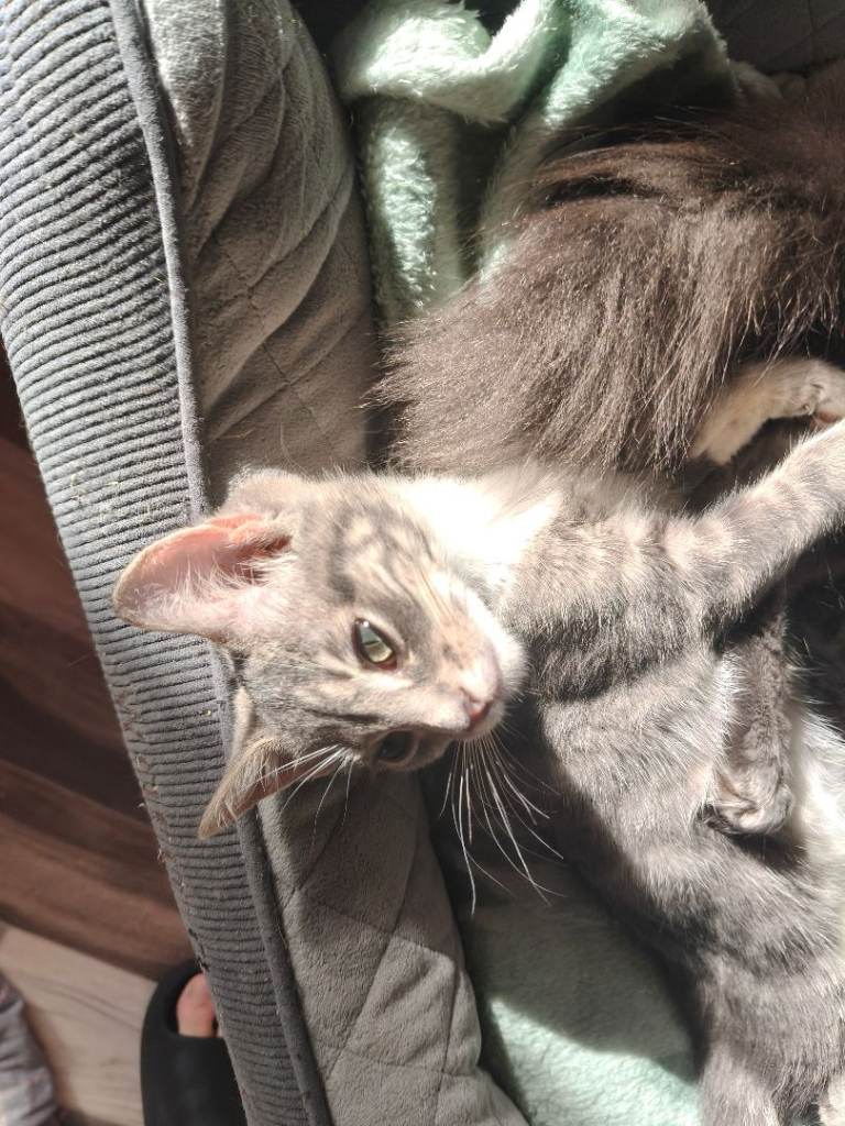 Posting for under a month2 female blue and white kittens. 1 tabby blue and white. 1 blue and white.