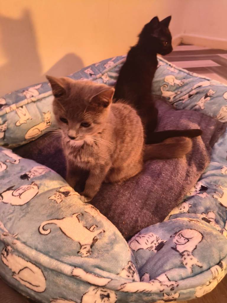2 female blue and white kittens. 12 weeks old. Flea'd and wormed. Litter trained
