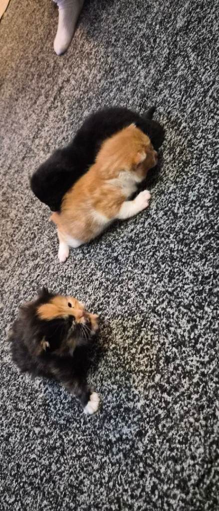 1 Ginger and 1 Tiger kittens are looking for a new home . Father is British Scottish and the Mother is Mixed. Gender not known
