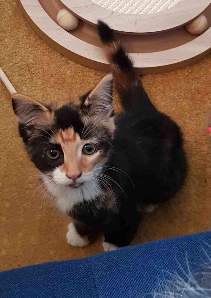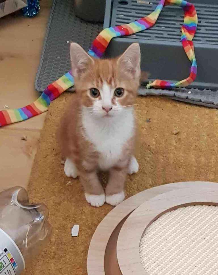 Will come with small kitten litter tray and a small bag of wood pellet litter, food, treats, and favourite toys (which at the moment is everything).