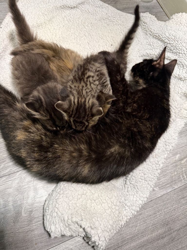 Mother is tortoiseshell short hair & father is grey ragdoll