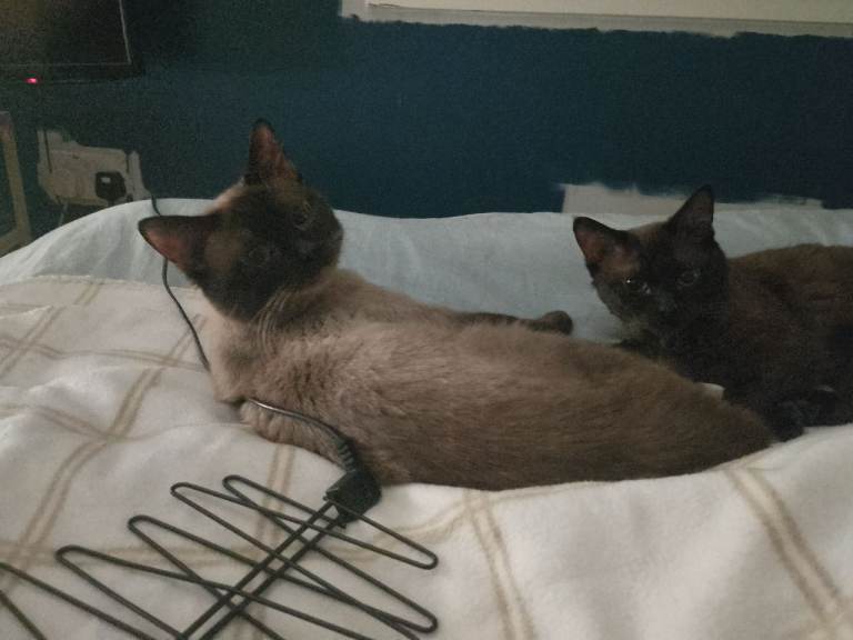 2 male Siamese x brothers. Must be rehomed together. Approximately 2 years old. Indoor cats but recently started letting them out in an enclosed garden whilst keeping an eye on them. Neither cat has been neutered. Will only consider a home with no young children and must be kept together.