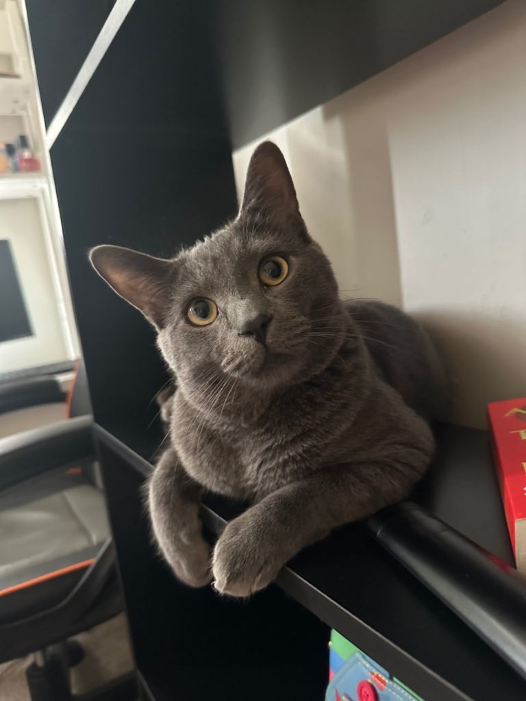 Although they are indoor cats I think the grey one would thrive with outside space.