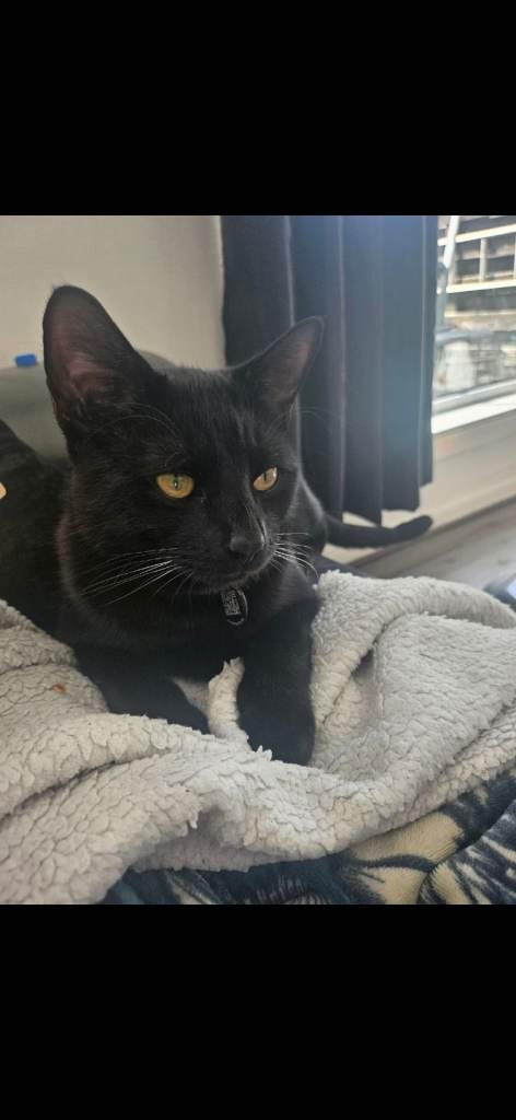 2 year old male cat looking for a new home through no fault if his own. Born January 2024.