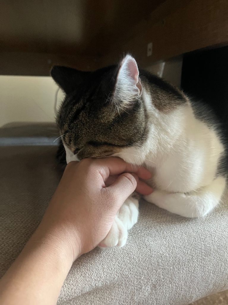 Mochi is such a lovely cat and he really loves getting cuddles or cuddling up to you himself. He’s very quiet and very gentle.. if I could keep him I would but my allergies are really bad. I am looking for a really loving family that will love him just as much as we do.