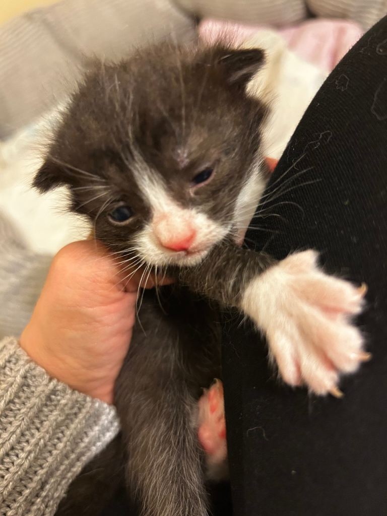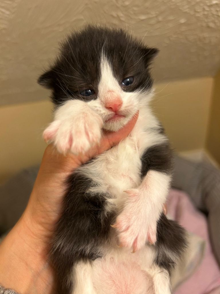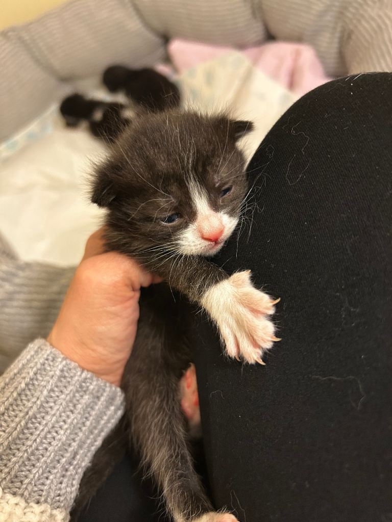 3 beautiful kittens, 3 males. The mother with white hair with some black patches, the father completely black hair.