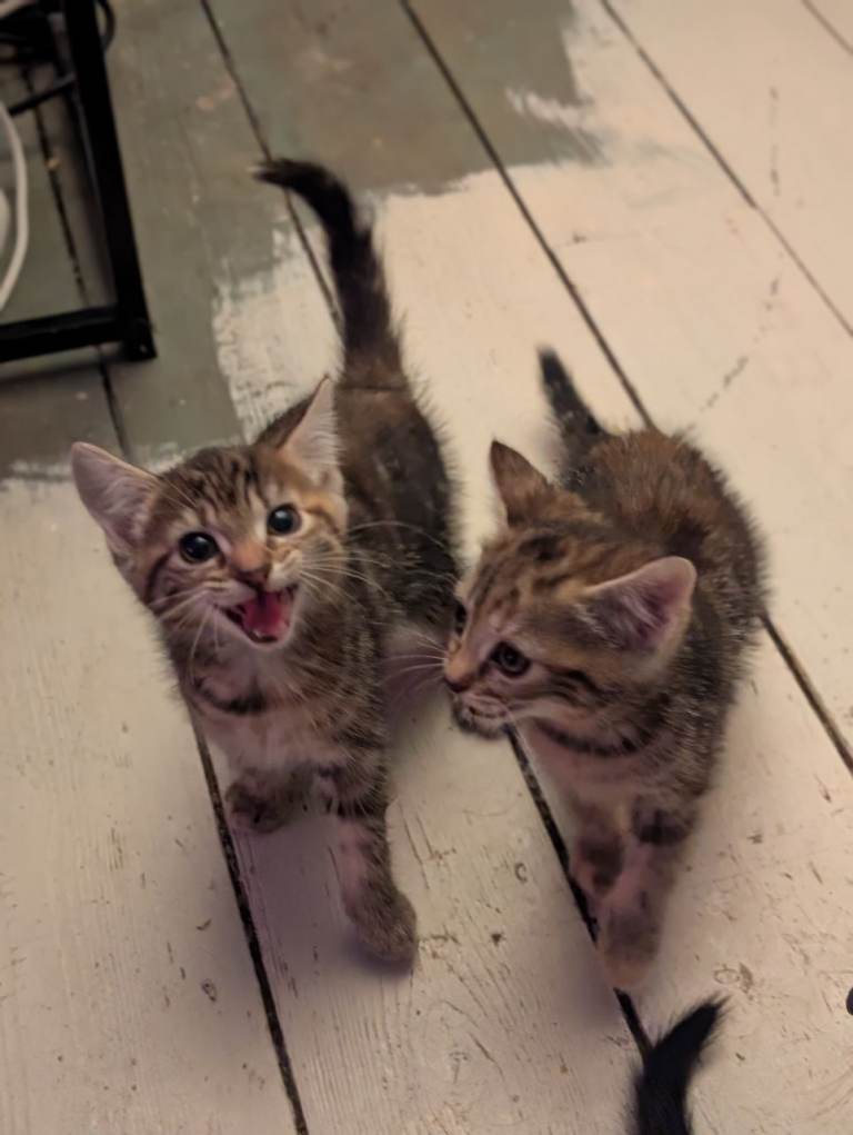 3 absolutely beautiful kittens for sale. They're from a litter of 5 (the three in the middle of the photo of them all are the ones for sale) , but we are keeping 2 in the family 😻 2 females, and 1 male. The females are the Tabby's. And the black one is male. These kitties are very loved. They have been brought up around other cats, 2 large dogs and 4 noisy kids 🤣 They absolutely love cuddles. They are all eating proper food (human food and cat food 🤣) They are all using the litter tray. They are all flead and wormed. The best homes only for these beautiful babies ❤️