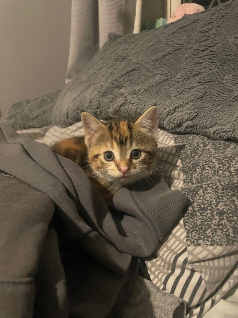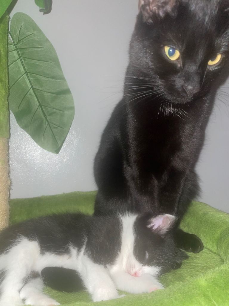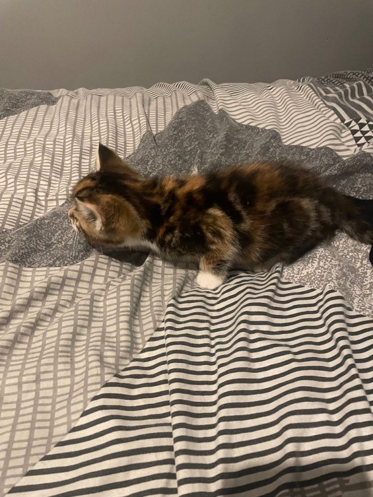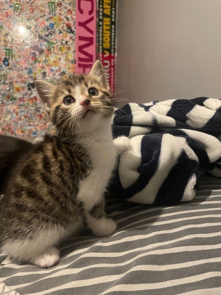 I have 3 beautiful kittens. 1 male black+white. 1 girl tabby+white. 1 girl calico. They were born Thursday 29th of January and will be ready to go to their forever homes from Friday 3rd of April (9 weeks old). They will be flead and wormed ( 6+8 weeks). They are all very confident and happy babies, they have the full run of the house, they are never locked in a room. I’m a strong believer in leaving them explore and be free to learn life skills naturally and confidently. They are part of our family and get plenty of cwtches and love, they also interact with my other cats. They’re eating kitten biscuits and kitten wet food (whiskas wet food IAMS kitten biscuits) and they drink water. They all use the litter tray and I’ve not had any accidents as again I believe leaving them run free teaches them to seek the litter tray.