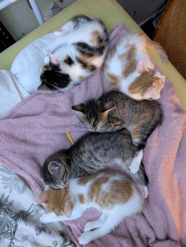 8 weeks old kittens for sale. Both ginger+white are boys, the rest are girls. Ready to be collected now.